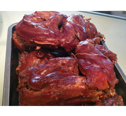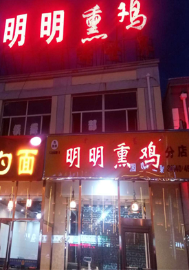 明明熏雞:傳統(tǒng)工藝(鐵鍋熬煮4-5小時(shí)),色澤紅潤(rùn),肉質(zhì)酥嫩。